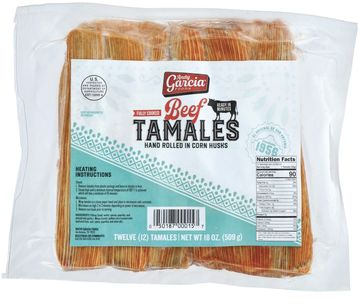 1 dozen tamales: tender beef wrapped in soft corn masa and steamed in a natural corn husk for authentic flavor.